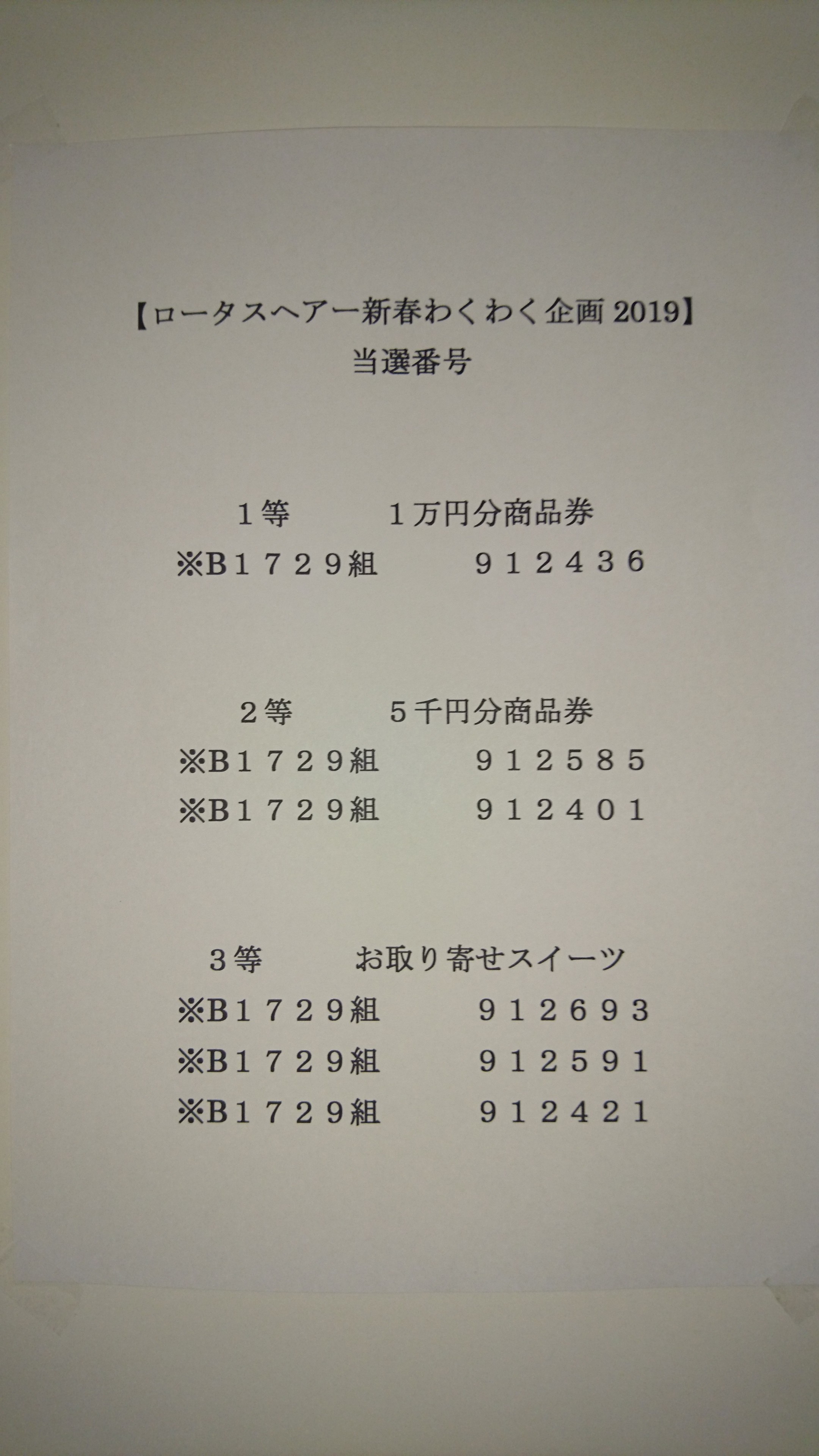 lotus HAIRからの年賀状の番号をご確認くださいね