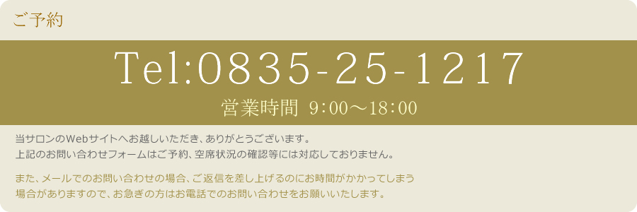 ご予約には対応しておりません。ご予約はお電話にてお願いいたします。